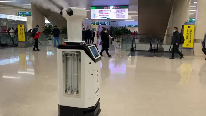 消毒機器人什么場合作用大,大型公共場所使用消毒機器人進行消毒