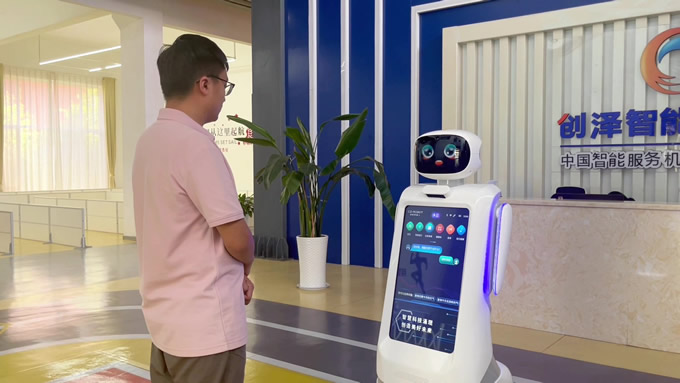 創澤智能消毒機器人和智能大屏機器人等多款機器人亮相蘭洽會,彰顯了創澤AI技術實力與場景深耕能力