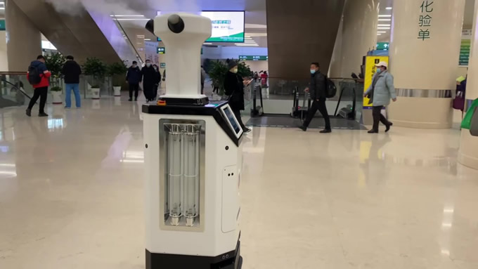 消毒機器人什么場合作用大,大型公共場所使用消毒機器人進行消毒