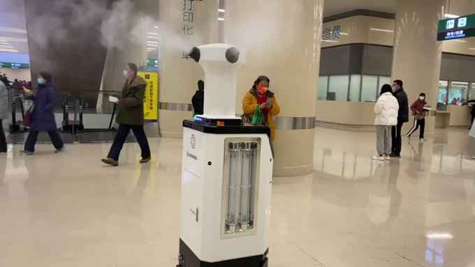 上海世博展覽館方艙醫(yī)院使用的消毒機(jī)器人