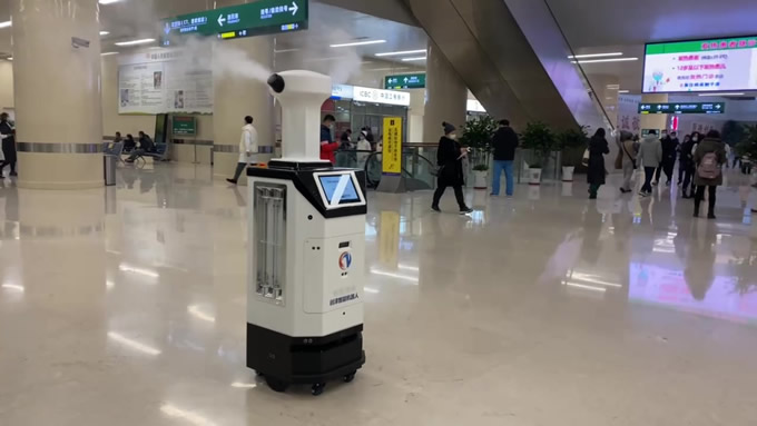 消毒機器人什么場合作用大,大型公共場所使用消毒機器人進行消毒