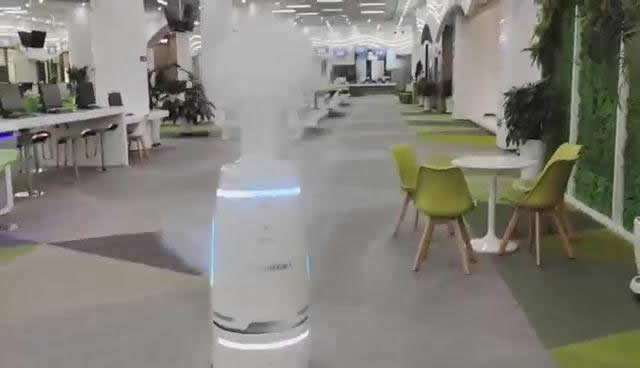 安裝了機器人底盤的消毒機器人通過將稀釋的消毒藥劑由霧化噴頭噴灑而出,對空氣進行霧化消毒,1小時可消毒1500m3的空間,同時也可以定時消毒功能,自動執行消毒任務。給與環境較大程度的消殺,無需承受人力被感染的風險。無論白天還是黑夜都可以隨時工作,機器人消毒很細致,角角落落不留死角,工作效率很G。同時也可以實現自主移動、秒J智能避障、定時定點執行消毒任務等功能。與人工消毒相比,機器人消毒具有零接觸、防止二次感染、消毒更多面徹底等優勢,在提G作業效率的同時,能夠一定程度上減少人工投入。