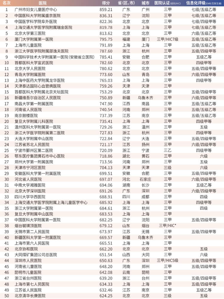 北京協和醫院,四川大學華西醫院,復旦大學附屬中山醫院,中山大學附屬第一醫院,北京第一醫院,北京大學第三醫院,浙江大學附屬第一醫院
