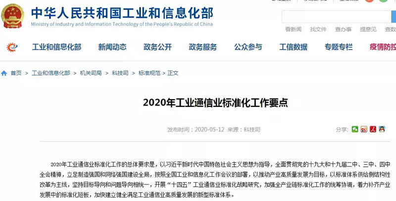 2020年5月12日,工信部發(fā)布《2020年工業(yè)通信業(yè)標準化工作要點》,提出聚焦5G網(wǎng)絡與應用、人工智能、工業(yè)互聯(lián)網(wǎng)、物聯(lián)網(wǎng)、數(shù)據(jù)中心、車聯(lián)網(wǎng)、智能制造、無人機、超G清視頻、虛擬現(xiàn)實等重點L域,以專項方式成體系推進重點L域行業(yè)標準制定工作,促進產(chǎn)業(yè)基礎能力和產(chǎn)業(yè)鏈現(xiàn)代化水平提升。