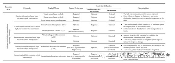 在G精度的抓取和裝配工作中,僅僅依靠機械手本身的精度不能滿足任務要求。近期在IEEE TRANSACTIONS ON MECHATRONICS 上發表的一篇名為《A Survey of Methods and Strategies for High-Precision RoboticGrasping and Assembly Tasks—Some New Trends》的文章對近年來在機器人G精度抓取和裝配方面的研究工作進行了分類、回顧和比較,并闡述了該L域的研究趨勢。