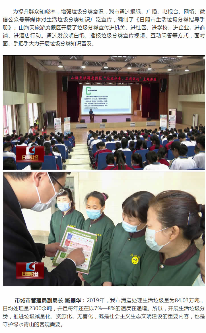 垃圾分類(lèi)是實(shí)現(xiàn)垃圾減量化、資源化、無(wú)害化的基礎(chǔ)工作,也是保護(hù)環(huán)境,推進(jìn)生態(tài)文明建設(shè)的重要舉措。今年3月,日照市政府印發(fā)了《日照市城市生活垃圾分類(lèi)工作實(shí)施方案》,明確工作目標(biāo)。