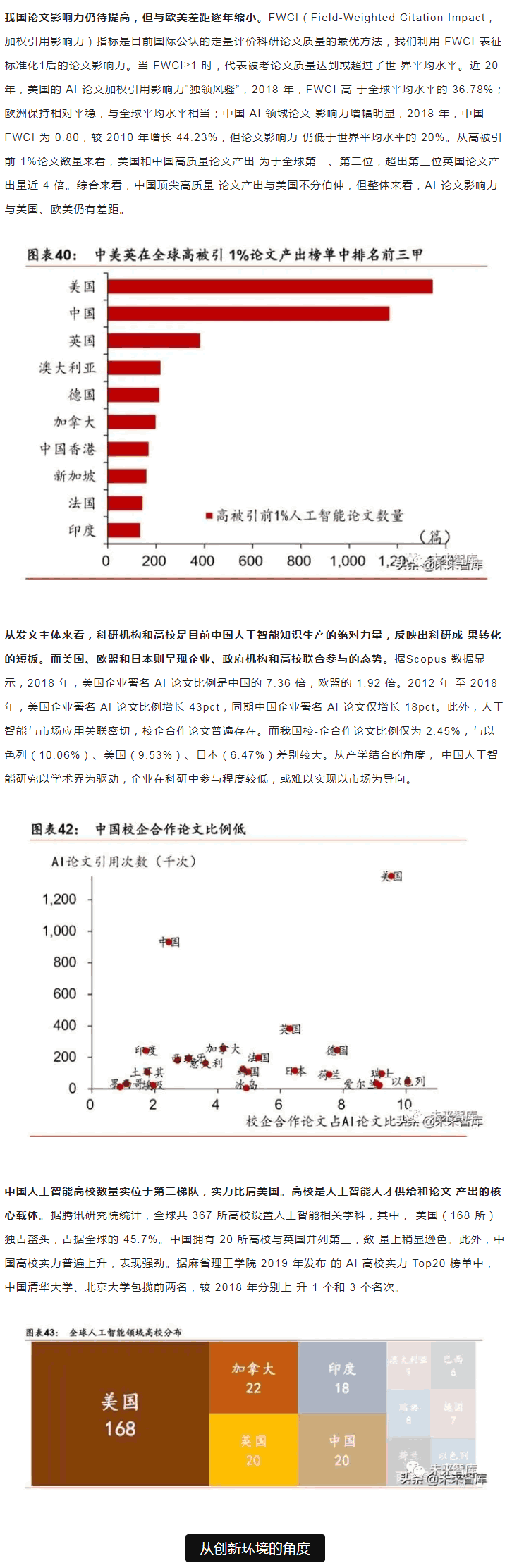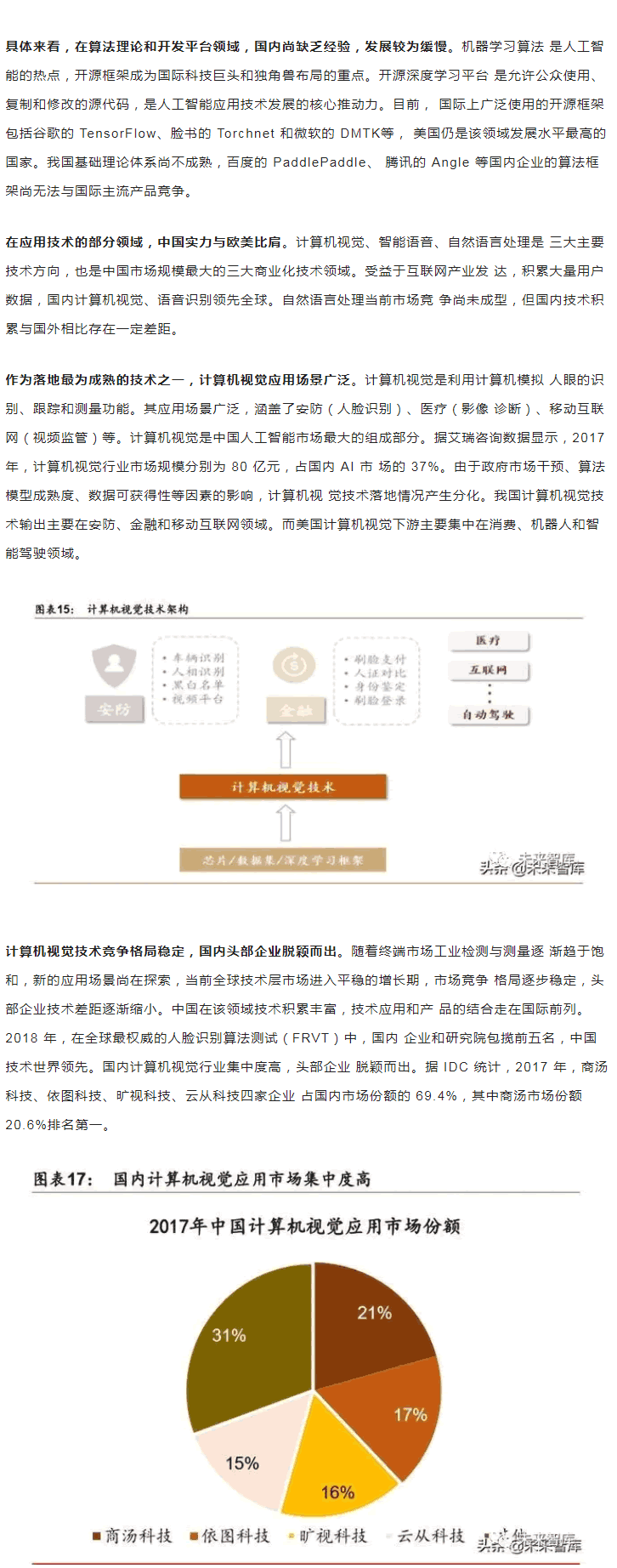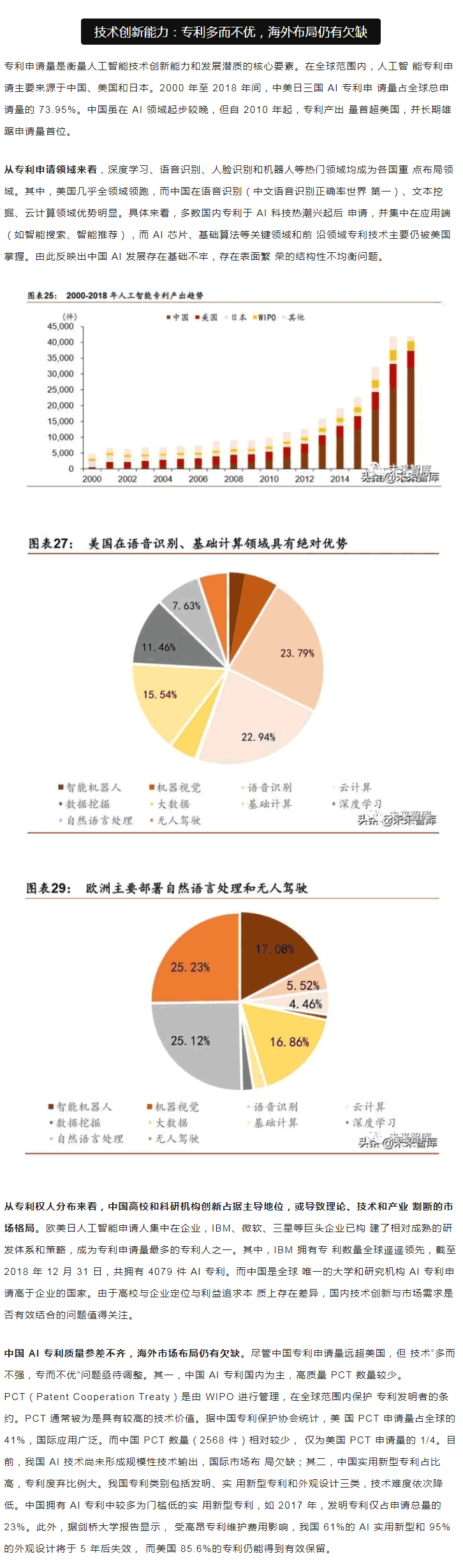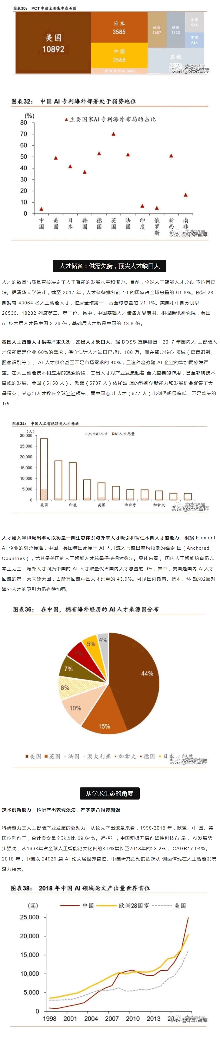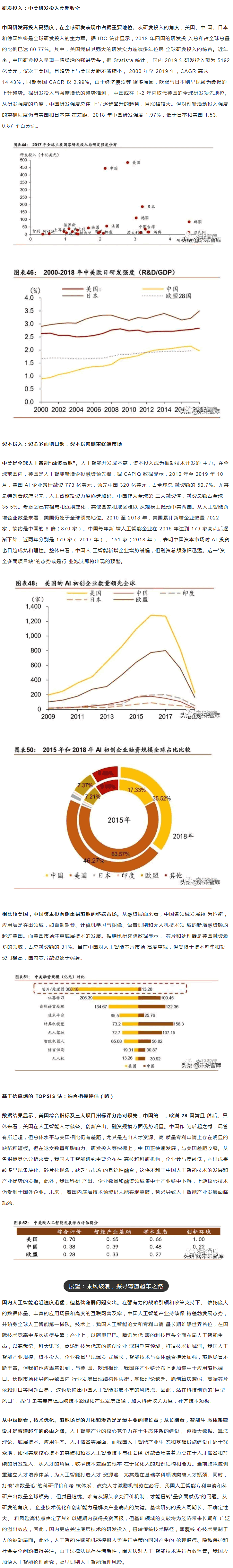 范圍內(nèi),中美“雙雄并立”構(gòu)成人工智能D一梯隊(duì),日本、英國、以色列和法國等發(fā) 達(dá)國家乘勝追擊,構(gòu)成D二梯隊(duì)。同時(shí),在D層設(shè)計(jì)上,多數(shù)國家強(qiáng)化人工智能戰(zhàn)略布局, 并將人工智能上升至國家戰(zhàn)略,從政策、資本、需求三大方面為人工智能落地保駕護(hù)。后起之秀的中國,局部L域有所突破。中國人工智能起步較晚,發(fā)展之路幾經(jīng)沉浮。自 2015 年以來,政府密集出臺系列扶植政策,人工智能發(fā)展勢頭迅猛。由于初期我國政策 側(cè)重互聯(lián)網(wǎng)L域,資金投向偏向終端市場。因此,相比美國產(chǎn)業(yè)布局,中國技術(shù)層(計(jì)算 機(jī)視覺和語音識別)和應(yīng)用層走在世界前端,但基礎(chǔ)層核心L域(算法和硬件算力)比較 薄弱,呈“頭重腳輕”的態(tài)勢。當(dāng)前我國人工智能在國家戰(zhàn)略層面上強(qiáng)調(diào)系統(tǒng)、綜合布局。