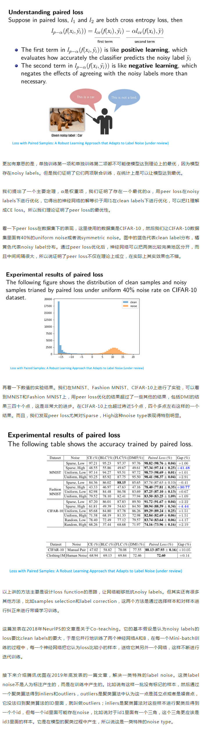 現實數據中存在的標簽噪音(label noise)根據Feature可以分成兩種:Feature independent noise和 Feature dependent noise。Feature independent noise是與特征無關的,比如將一只狗的圖片誤標記成汽車,狗和汽車沒有什么相似特征,所以屬于這類。Feature independent noise是與特征有關的,比如說狗和狼具有很多相似特征屬性,標注人員可能把狗誤標記成狼,那就屬于這類。其實現實場景更多存在都是feature dependent noise。