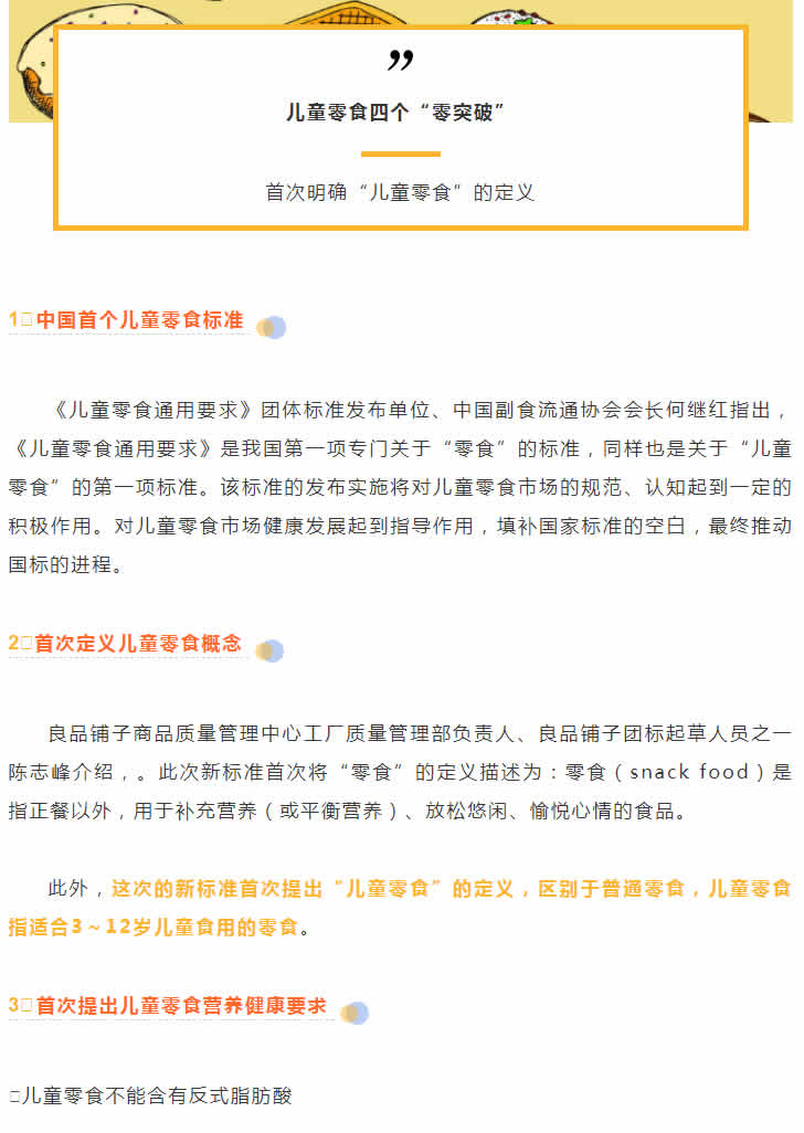 此外,這次的新標準首次提出“兒童零食”的定義,區別于普通零食,兒童零食指適合3~12歲兒童食用的零食。