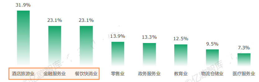 在已使用或計劃使用服務機器人的企業(yè)中,酒旅、金融服務、餐飲快消行業(yè)滲透率G,均超過20%。在持續(xù)了解服務機器人的企業(yè)中,倉儲