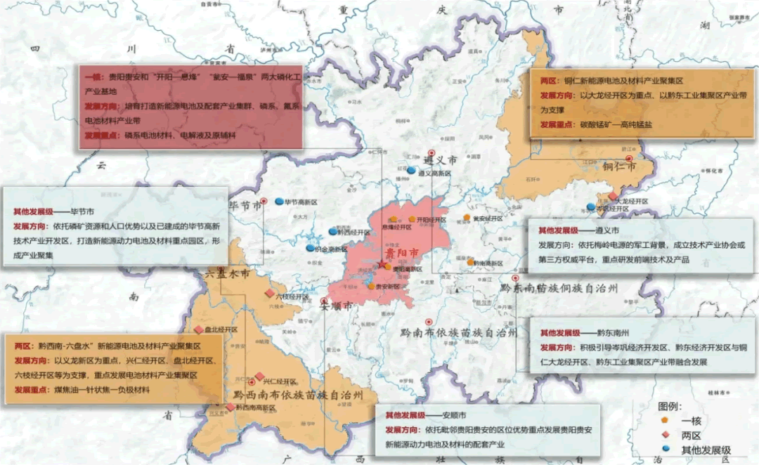 貴州省新能源動力電池及材料研發生產基地-一核兩區”產業布局