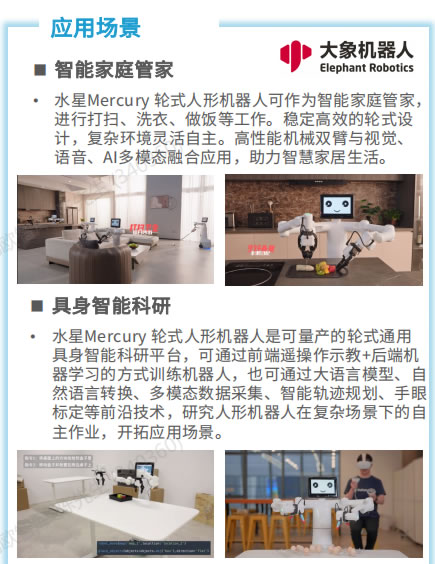 作為輪式人形機器人開拓者,大象機器人公盡一款輪式人形機器人水星Mercury X1目前已實現(xiàn)批量生產,模成上百臺的訂單交付。未來規(guī)夠推出X3、 Z3兩款輪式人形機器人,將具備⾝活的機械結構,強大的機器性能和更便捷智能的部署、開發(fā)方式,通過穩(wěn)定G效的輪式設計結合成熟的雙臂+視覺應用,帶來全新改變