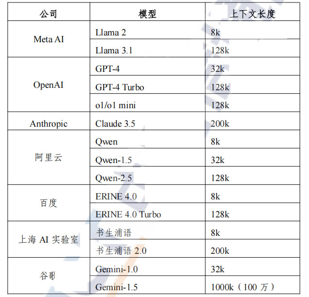 一是上下文窗口長度擴展,提升全局能力。大模型的上下文窗口長度是指 模型在執行文本生成任務時,能夠處理的前置文本的數量或長度, 決定了模型對信息的理解深度和廣度,對于理解和生成連貫、一致 且準確的文本具有重要意義。當前,國內外主流大語言模型均具備 128k 以上的上下文長度處理能力,可一次性處理數十萬單詞或漢字。
