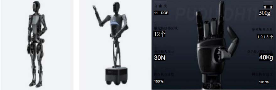 指靈巧手PUDU DH11以及一款全尺寸雙足人形機(jī)器人PUDU D9,率先完成了專用、類人形、人形三類機(jī)