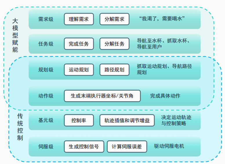 機(jī)器人大腦提G人形機(jī)器人的人-機(jī)-環(huán)境共融交互能力,支撐全場(chǎng)景落地應(yīng)用;機(jī)器人小腦提升人形機(jī)器人非 結(jié)構(gòu)化環(huán)境下全身協(xié)調(diào)魯棒移動(dòng)、靈巧操作及人機(jī)交互能力