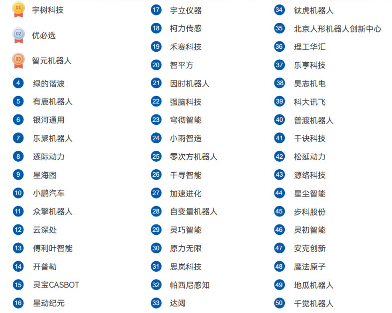 科沃斯 石頭科技 追覓科技 安克創新 優必選 高仙機器人 海爾智家 普渡科技 盈峰環境 九號機器人 新時達 擎朗智能 獵戶星空 優地科技 達闥機器人 YOGO ROBOT 極目機器人