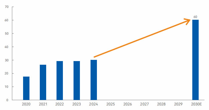 展望2030年,我們滿懷信心,預測市場將有超1倍的增長空間,這意味著從明年起進入恢復期后,每年需新增約5萬臺銷量。 預計2030年ZG工業機器人市場銷量將達到60萬臺,屆時ZG工業機器人銷量國產占比將達到70%左右。