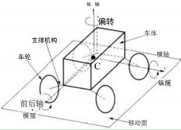 (1)車體:車體是車輪支撐機構(gòu)的安裝基座,在機械上起著決定各個車輪位置 關(guān)系的作用。另外,它在移動面與各車輪、車輪支撐部分之間起到驅(qū)動力和制動力 等的力傳遞作用。在實施移動時,多數(shù)情況下需要將車體上的某特定位置定義為基準點,車體有時也充當(dāng)安裝搭載機械手等的基座。