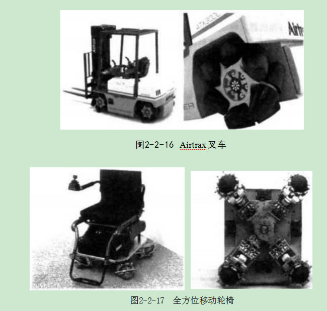 現(xiàn)在比較常見(jiàn)的全方位移動(dòng)機(jī)構(gòu)有:空氣懸浮式,全輪轉(zhuǎn)向式,如圖2-2-3 所示。麥卡納姆輪(MECANUM)S~7, 球履帶全方位移動(dòng)機(jī)構(gòu)8等。