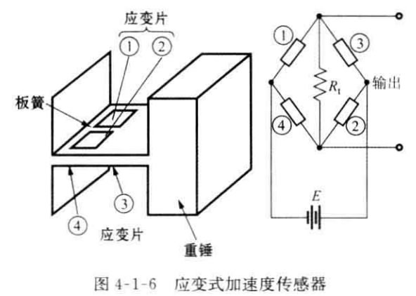 應(yīng)變片加速度傳感器3:應(yīng)變片加速度傳感器是由一個(gè)板簧支承重錘所構(gòu)成 的振動(dòng)系統(tǒng)。在板簧兩面分別貼兩個(gè)應(yīng)變片,應(yīng)變片受振動(dòng)產(chǎn)生應(yīng)變,其電阻值的 變化通過電橋電路的輸出電壓被檢測(cè)出來(lái)。