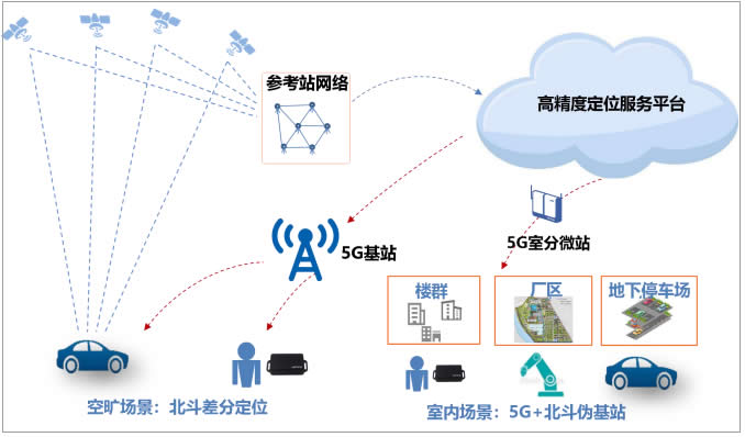 定位能力——北斗衛(wèi)星定位系統(tǒng)能夠覆蓋較廣的范圍,為區(qū)域內(nèi)的用戶 提供G精度定位服務(wù);而在一些遮擋場景(寫字樓、商場、地下停車場、 G架橋)等,衛(wèi)星定位很難正常使用,需要 5G 基站覆蓋來補(bǔ)充,兩者 融合實(shí)現(xiàn)室內(nèi)外場景的多面覆蓋
