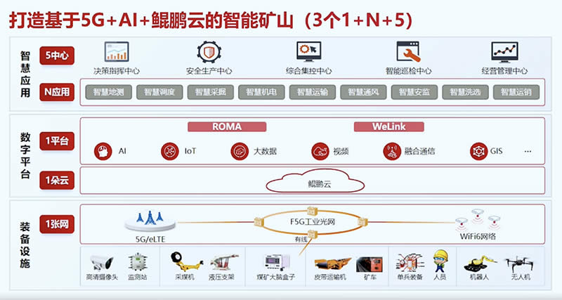 一張網、一朵云、一平臺、N應用、五中心,組成了華為智能礦山聯合解決方案的整體面貌。