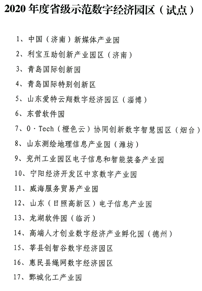 青島海爾云谷 滕州市大數(shù)據(jù)產(chǎn)業(yè)園 梁山經(jīng)濟開發(fā)區(qū) 博興縣數(shù)字經(jīng)濟園區(qū) 藍海L航大數(shù)據(jù)產(chǎn)業(yè)園 方達電子商務園 棗莊中展大數(shù)據(jù)產(chǎn)業(yè)園