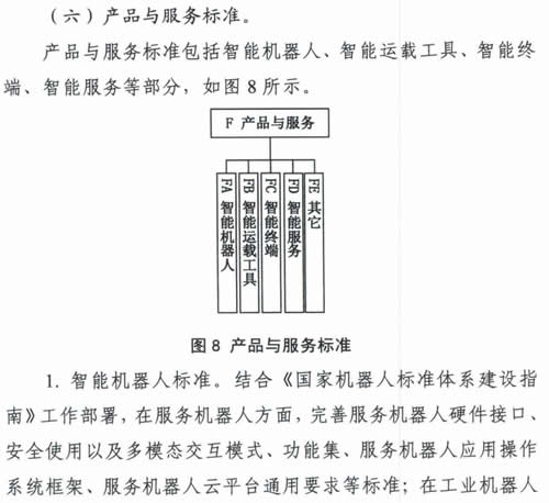 智能機器人標準:結合《國家機器人標準體系建設指 南》工作部署,在服務機器人方面,完善服務機器人硬件接口、 安全使用以及多模態交互模式、功能集、服務機器人應用操作 系統框架、服務機器人云平臺通用要求等標準;在工業機器人