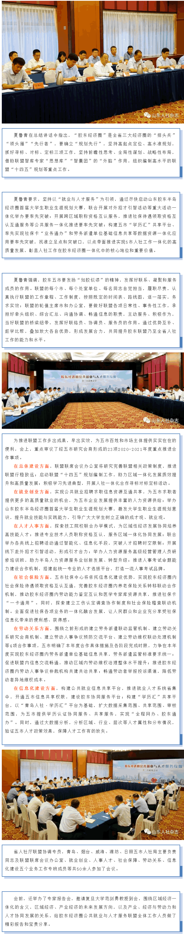 會議發布了由省人社廳牽頭抓總、五市人社局共同參與的聯盟“5+1”運行機制分工方案,研究審議通過了由青島市人社局代為起草的聯盟議事規則、組織機構設置方案、2020-2021年度重點推進事項和成立聯盟智庫的建議共4個文件,聯盟社會保險組業務工作專班在會上簽署了合作協議。
