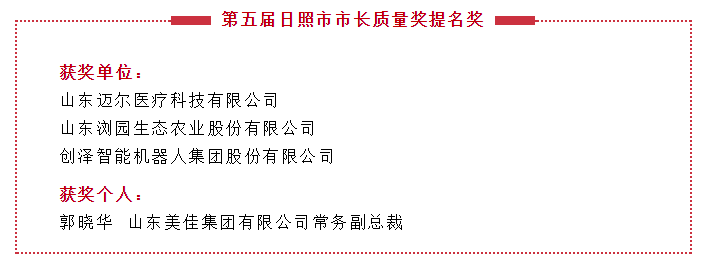 第五屆日照市市長質(zhì)量獎(jiǎng)提名獎(jiǎng)獲獎(jiǎng)單位