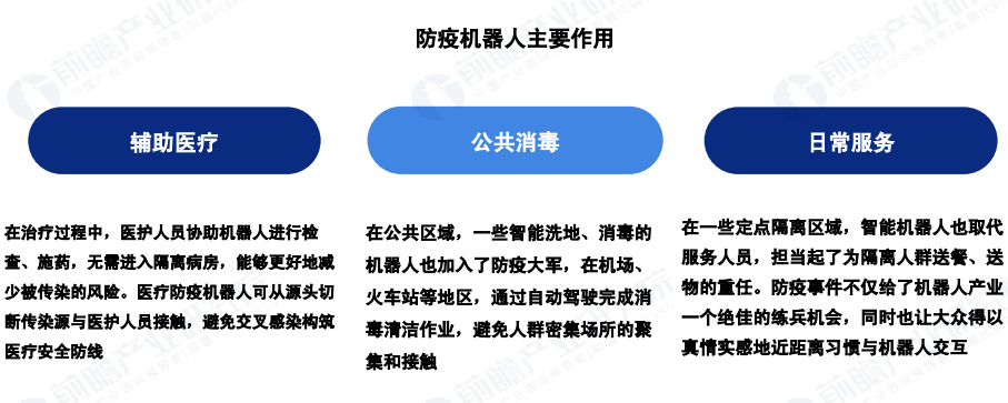 防疫機(jī)器人在醫(yī)療L域的應(yīng)用場(chǎng)景主要為:機(jī)器人替代醫(yī)護(hù)人員完成消毒、導(dǎo)診、送藥等工作,疫情下,不同種類的防疫機(jī)器人在醫(yī)院場(chǎng)景中承擔(dān)不同的功能