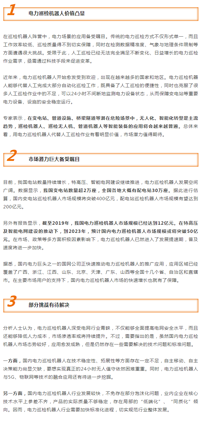 在特G壓及智能電網(wǎng)建設(shè)的推動下,到2023年,預(yù)計國內(nèi)電力巡檢機(jī)器人市場規(guī)模或?qū)⑼黄?0億元。