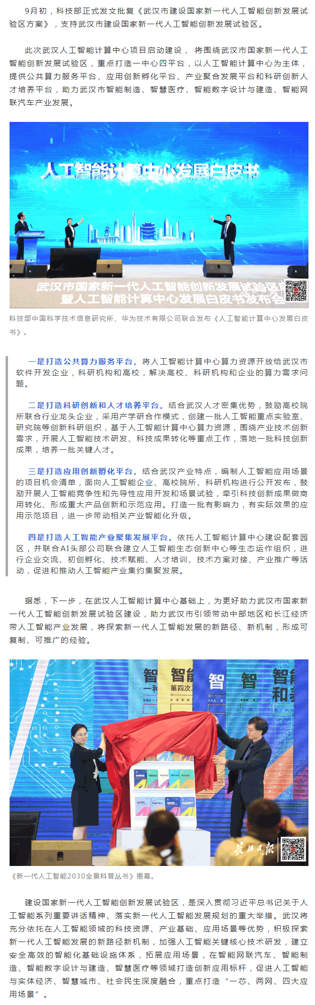 《人工智能計(jì)算中心發(fā)展白皮書》在武漢發(fā)布,具有標(biāo)志性意義,將引L武漢人工智能創(chuàng)新發(fā)展試驗(yàn)區(qū)建設(shè),推動(dòng)中國(guó)人工智能產(chǎn)業(yè)發(fā)展