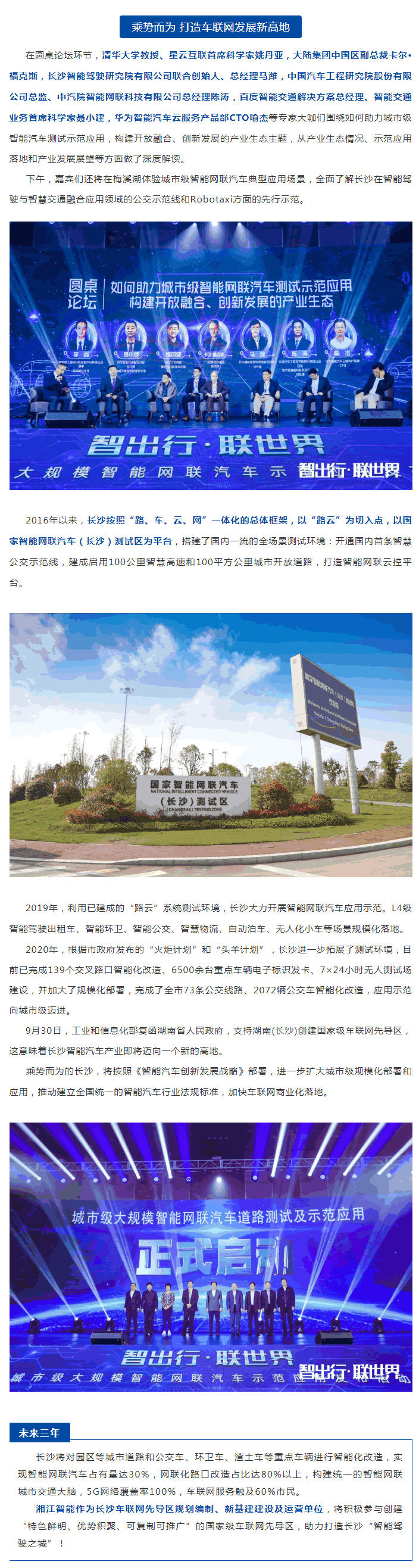 長沙市、株洲市、湘潭市、岳陽市工業(yè)和信息化局共同簽署了《城市級大規(guī)模智能網(wǎng)聯(lián)汽車道路測試及示范應(yīng)用共建倡議書》。