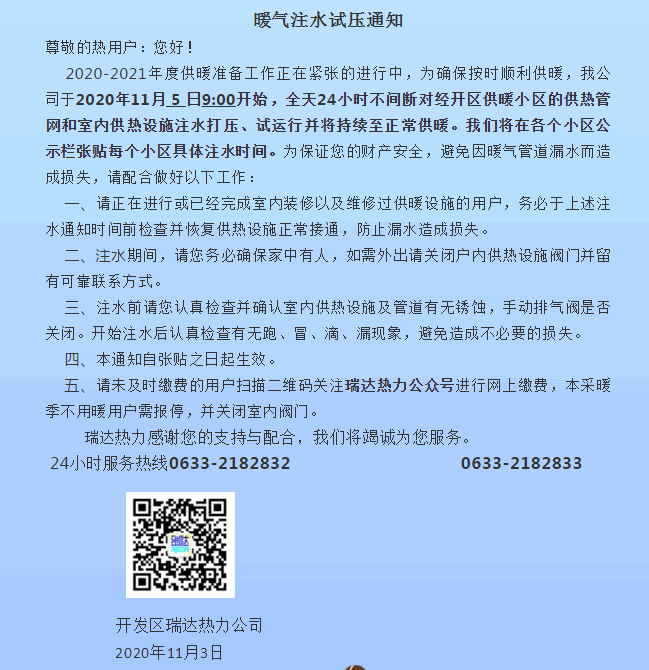 計(jì)劃試供暖時(shí)間11月1日,規(guī)定供暖時(shí)間:2020年11月15日至2021年3月15日。