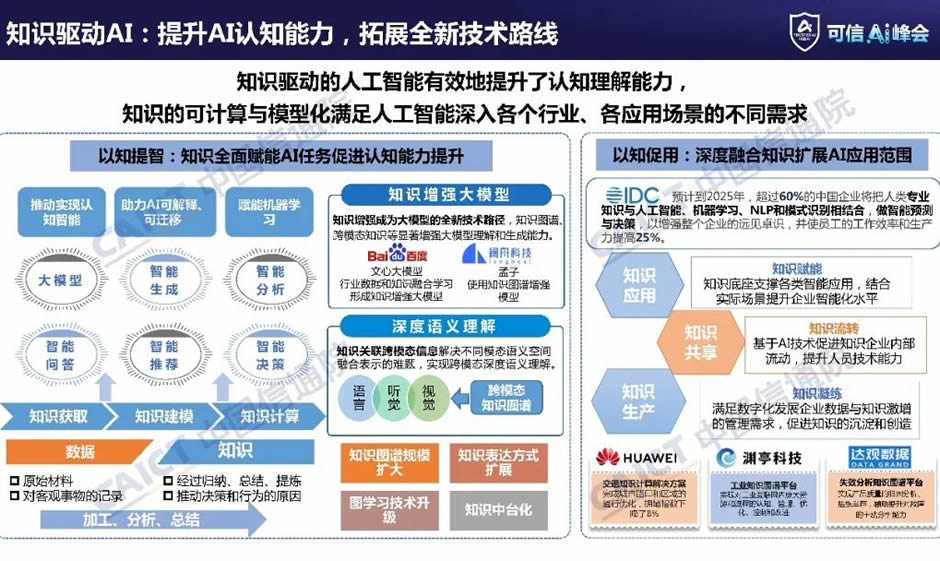 知識驅動助力人工智能認知能力的提升,滿足人工智能深入各個行業不同應用場景的需求。隨著深度學習與知識圖譜等多重技術的深度融合,綜合利用大量知識數據中的因果和邏輯關系,可以助力人工智能認知能力的提升,來解決人工智能深入各個行業時場景復雜、可解釋性較低等問題。在技術方面,知識和數據雙輪驅動的人工智能技術路線展現了強勁的發展潛力,知識的融合應用有效地提升了智能問答、智能推薦、大規模預訓練模型等人工智能技術中的效果。文心大模型、孟子大模型等均嘗試利用知識增強技術路線提升效果。在應用方面,知識與人工智能的融合拓展了人工智能的應用范圍,促進形成知識凝練、知識流轉、知識賦能閉環,推動數字化發展下行業與企業各類知識的沉淀、流轉,顯著提升實際場景的智能應用水平。