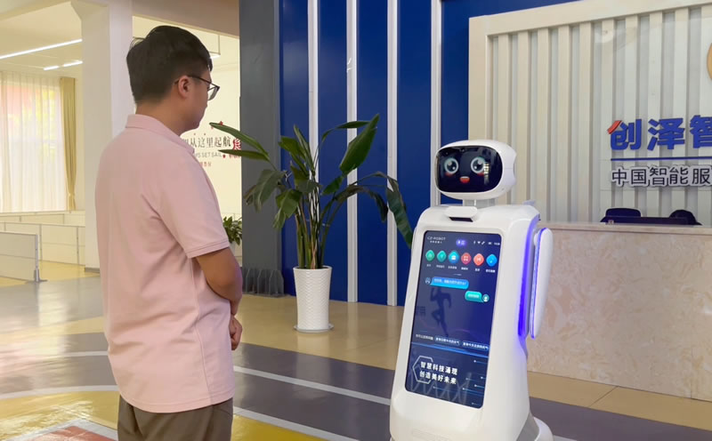 一來到創(chuàng)澤公司前臺,一名機(jī)器人接待員便主動迎上前來。它不但可以詢問你的來訪目的,還可以為你做信息登記,向你介創(chuàng)澤基本情況、業(yè)務(wù)實(shí)力、黨建特色、所獲榮譽(yù);它可以引L你到接待室,也能對一些問詢做出基本回答。