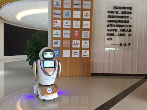 智能迎賓機(jī)器人正在工作區(qū)域待命,正在等待您的到來。