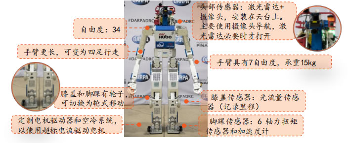 2013年7月,HUBO Lab團隊宣布推出新型號HUBO,稱為DRC-HUBO,專為參與DARPA機器人挑戰賽(DARPA Robotics Challenge ,DRC)設計。它擁有更長的手臂和腿,可以在雙足、四足行走和輪式前進之間切換;全身有34個自由度,左、 右手分別有3、4個手指,可以操縱方向盤、攀爬梯子等。2015年,DRC-HUBO超過Atlas贏得了DARPA機器人挑戰賽G軍。