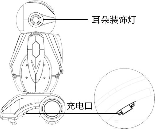 機器人的電源開關在機器人底部,控制機器人的開機和關機狀態(tài)。