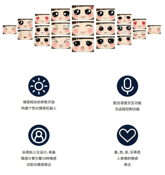 智能課堂機器人采用機器人視覺系統(tǒng),深度語音交互系統(tǒng)、先進的語音引擎,搭載環(huán)形麥克風(fēng)陳列、運用聲控識別、語義理解、人臉識別